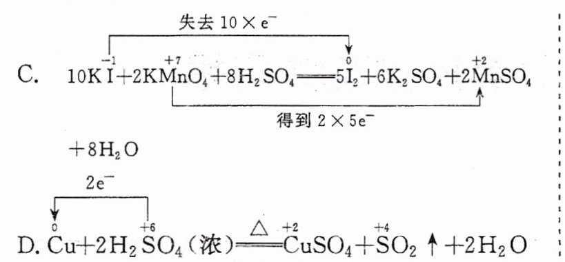 )A.$MnO_{4}^{-}→Mn^{2+}$