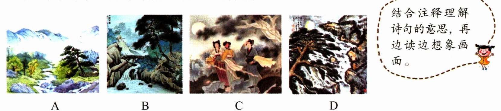 1. 下面图片中与第三行诗句描绘的画面相符的是(
