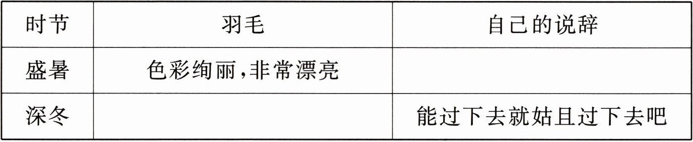 3. 夏天的寒号鸟和冬天的寒号鸟有什么不同,请你根据短文内容,补充表格。