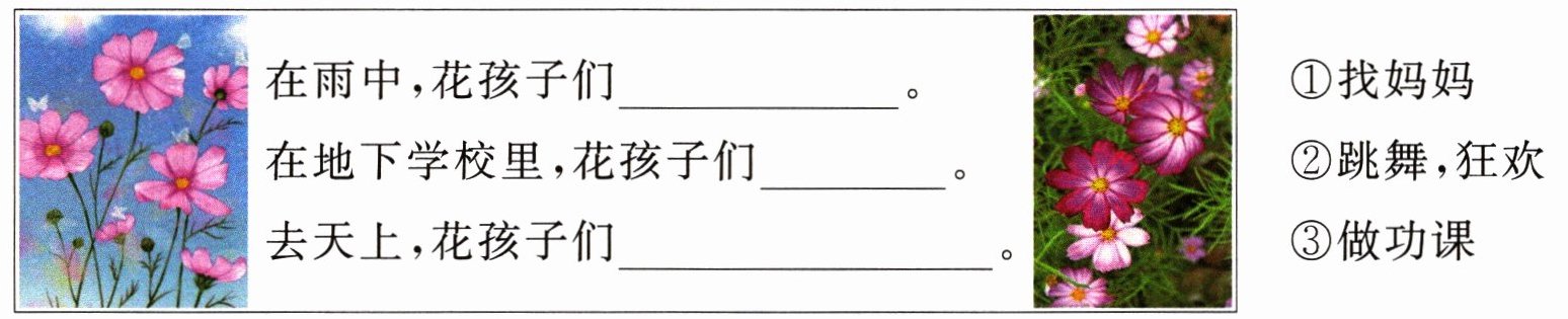 五 新情境如果你是花孩子,那么在花的学校里还会发生哪些事呢? 发挥想象写一写吧。