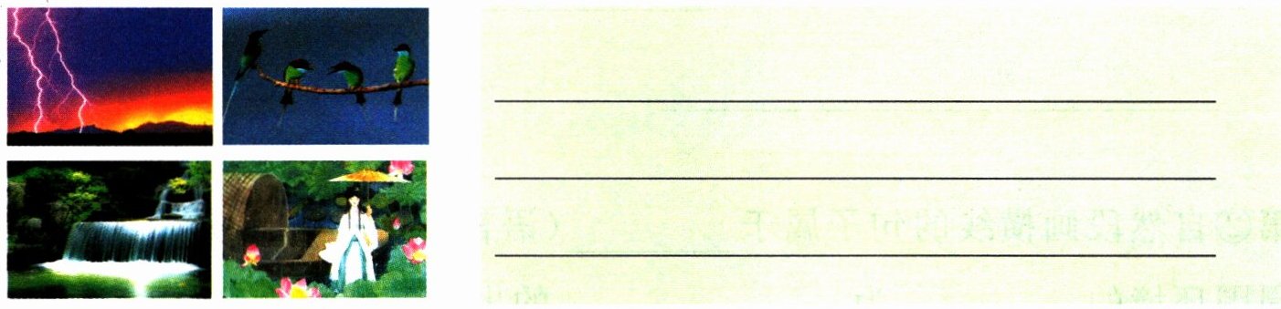 四 作者笔下的大自然的声音多么美妙呀!请你从下面的图片中,任选一种声音,仿照课文来写一写吧。