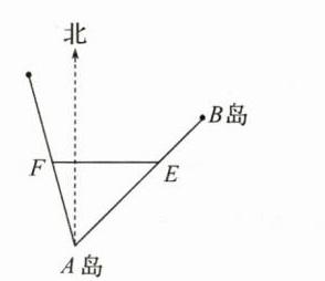 (1)设经过$ t $小时,船甲在船乙的正东方。此时船甲距离A岛$ 20 - 2t $ n mile,船乙距离A岛$ 4t $ n mile。由题意知,船甲、船乙与A岛构成三角形,其中$\angle BAC = 45^{\circ} + 15^{\circ} = 60^{\circ}$(C为船乙位置)。当船甲在船乙正东方时,$\angle ACB = 90^{\circ}$,则$\cos 60^{\circ} = \frac{AC}{AB'}$($ AB' $为船甲到A岛距离),即$\frac{1}{2} = \frac{4t}{20 - 2t}$,解得$ t = 2 $。