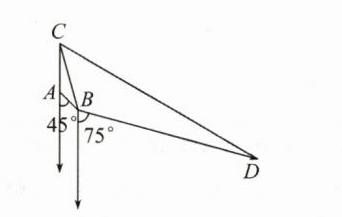 因为$BD\lt CD$,所以$\angle BCD = 45^{\circ}$,那么$\angle ACD = 45^{\circ}$,即缉私船沿南偏东$60^{\circ}$方向能最快追上走私船。