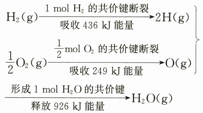 A 由题中信息可知,1 mol H₂(g)的共价键断裂吸收能量436 kJ,$\frac{1}{2}$ mol O₂(g)的共价键断裂吸收能量249 kJ,两项共吸收能量685 kJ;形成2 mol H—O键时共释放能量926 kJ。