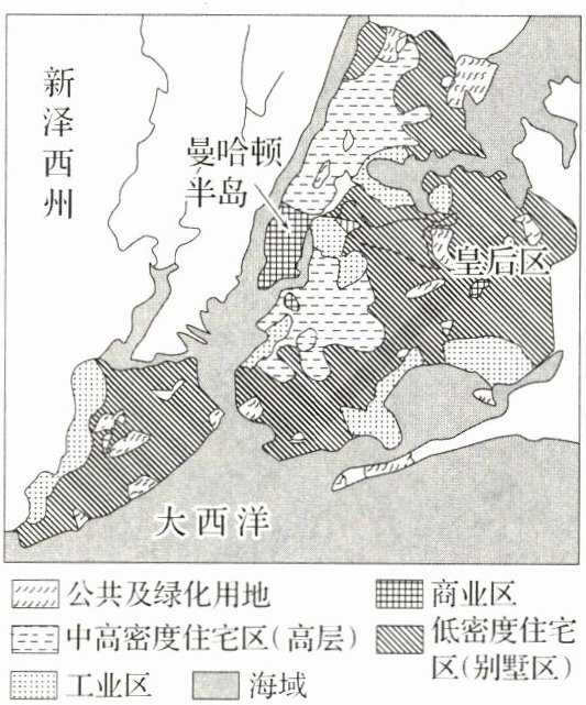 材料三 下图为美国纽约城市功能分区图。