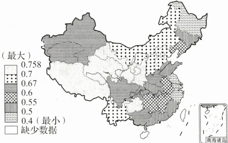 13. 下图是我国某年各省级行政区的综合人口压力指数分布示意图(人口压力指数是指一个区域现有人口数量与经济人口容量之比,当人口压力指数小于1时人口容量相对富裕,说明该地区相对人口压力不大,还有一定人口扩容余地),分析并完成下列问题。(25分)