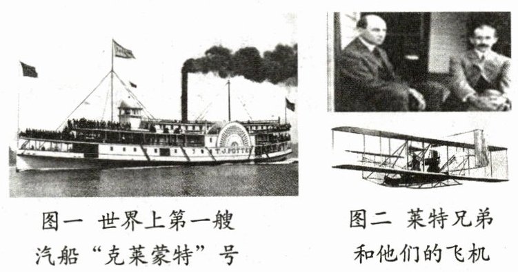 (3)图一是第一次工业革命的成果;图二是第二次工业革命的成果。能源:煤炭、电力、石油。