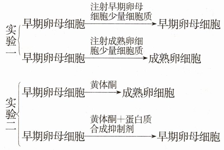 含有可以诱导卵母细胞成熟的物质。由实验二可得出推论:这种诱导早期卵母细胞成熟的“促成熟因子”的化学成分是