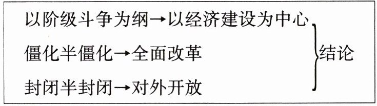 (3)中共十一届三中全会的胜利召开。战略转变前,工作中心是阶级斗争;战略转变后,工作中心是经济建设。