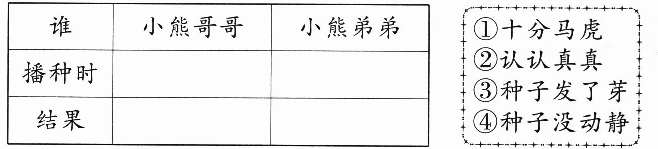 2.根据短文内容猜一猜:小熊哥哥播种时把______埋进了土里。