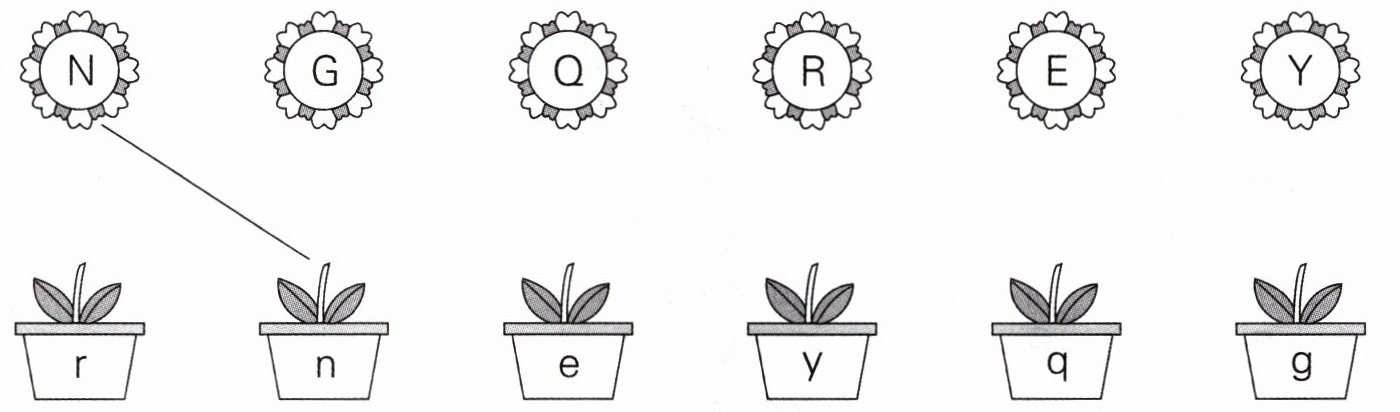 照 样 子,把 大 写 字 母 与 对 应 的 小 写 字 母 连 起 来。