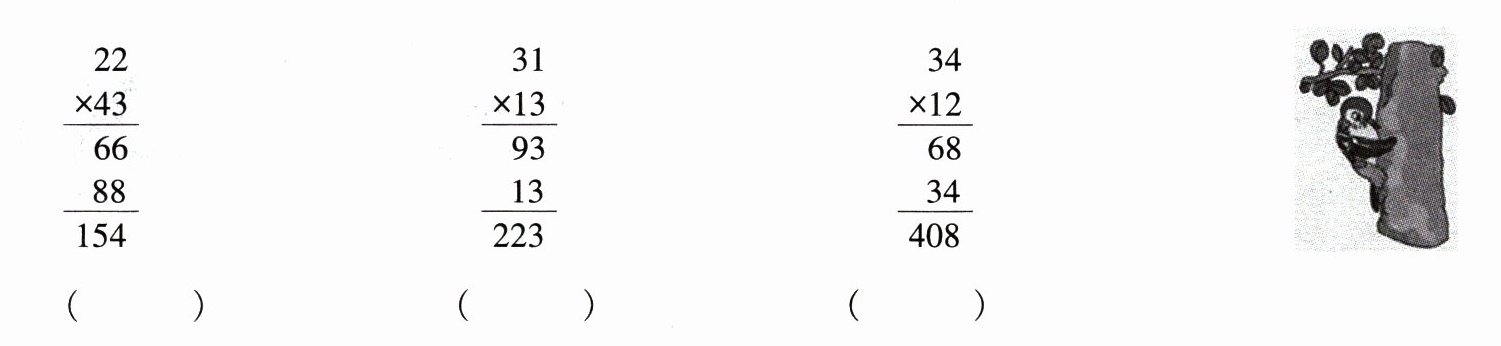 3. 同学们折纸鹤,送给幼儿园 13 个小朋友,每个送 32 只,总共送了(