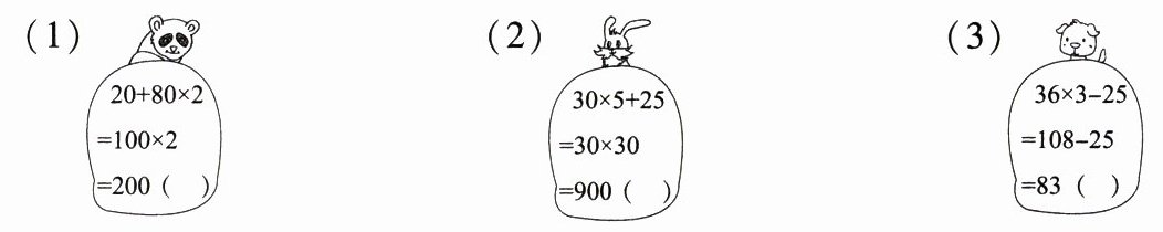二、下面的计算对吗?对的在( )里打“√”,错的打“×”并改正。