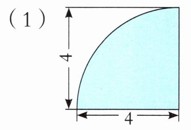 (1)$3.14×4^{2}÷4=12.56(cm^{2})$(2)$3.14×(6÷2)^{2}÷2-3.14×(4÷2)^{2}÷2=7.85(cm^{2})$