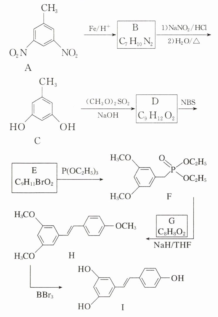 1. (2024·全国甲卷) 白藜芦醇 (化合物 I) 具有抗肿瘤、抗氧化、消炎等功效。以下是某课题组合成化合物 I 的路线。