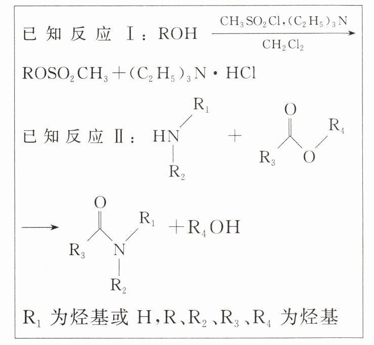 。(3) 对照已知反应Ⅰ,反应③不使用$ (\mathrm{C}_2\mathrm{H}_5)_3\mathrm{N} $也能进行,原因是 D分子中含有叔胺结构,可吸收反应生成的HCl