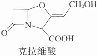 观察克拉维酸的结构简式可知,其分子中含有碳碳双键,且双键两端的碳原子上所连的两个基团不同,满足顺反异构产生的条件,所以存在顺反异构,该选项正确。