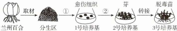 1. (2024·甘肃卷) 兰州百合栽培过程中易受病毒侵染, 造成品质退化。某研究小组尝试通过组织培养技术获得脱毒苗, 操作流程如下图。下列叙述正确的是 (