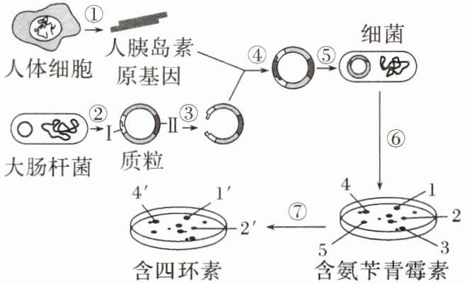 注:⑦过程表示用灭菌绒布从含氨苄青霉素培养基中蘸取菌种,再放到含四环素培养基中培养。