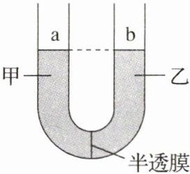 D 如果甲、乙都是蔗糖溶液,甲的浓度低于乙,则水分子运动的总趋势是由甲流向乙,液面a会下降,液面b会上升,A正确;如果甲、乙分别是葡萄糖溶液和蔗糖溶液,两者的质量分数相同,由于蔗糖是二糖,葡萄糖是单糖,因此甲的物质的量浓度大于乙,则液面a会上升,液面b会下降,B正确;当半透膜两侧的渗透作用达到平衡时,由于两侧的液面高度差可能不同,因此甲、乙溶液的浓度不一定相等,甲、乙溶液的渗透压也不一定相等,C正确,D错误。