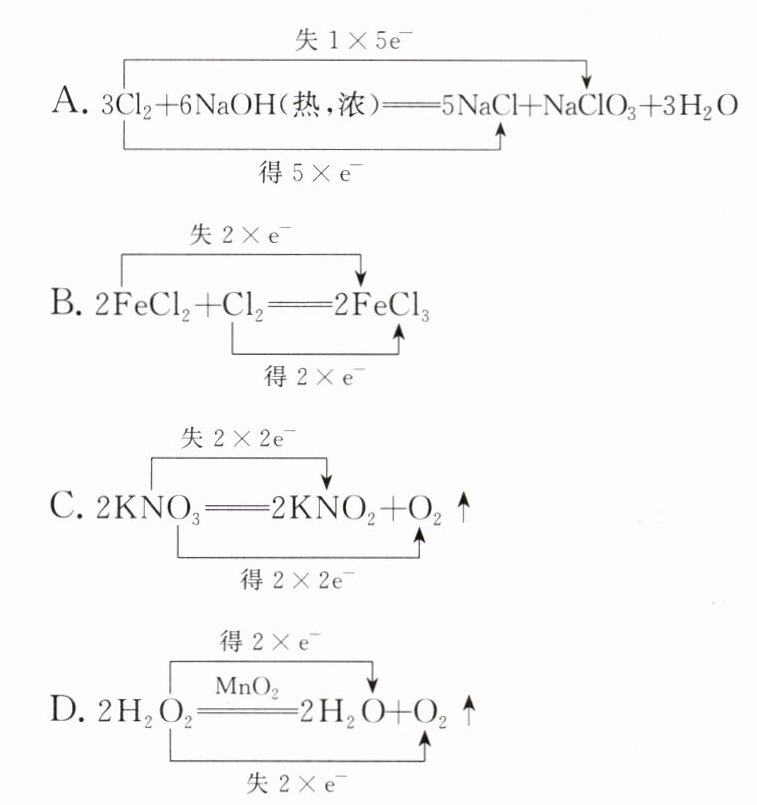 解析:选C。反应中,部分Cl的化合价升高5价,部分Cl的化合价降低1价,转移电子数为5,则电子转移的表示方法为