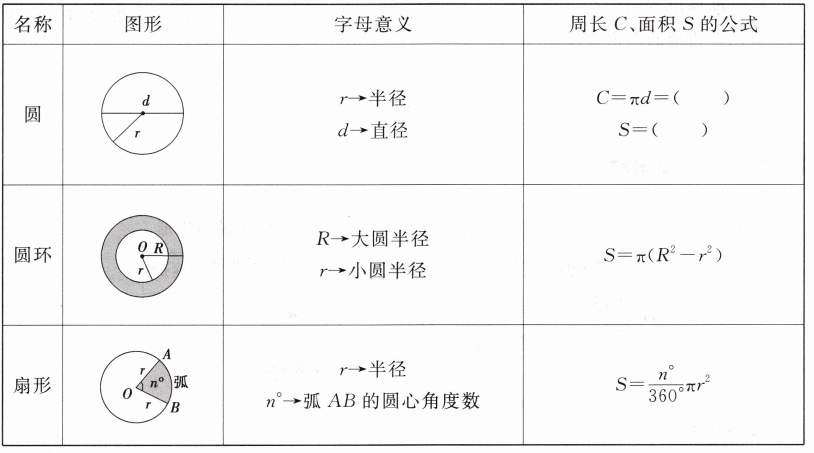 $\boldsymbol{2\pi r}$;$\boldsymbol{\pi r^{2}}$ 。