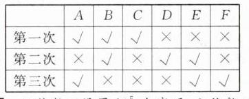 7. 六年级有三个班,每班有2个班长。开班长会时,每次每班只要求1个班长参加。第一次到会的有A、B、C;第二次有B、D、E;第三次有A、E、F。问哪2个班长是同班的。