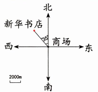 例题 新华书店在商场北偏西$35^{\circ }$方向上,距离是 4000m 处。请在下图中标出新华书店的位置。