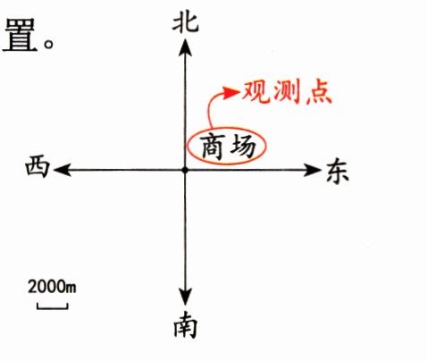 1. 确定比例尺:图中1单位长度代表2000m,新华书店距离商场4000m,所以图上距离为4000÷2000=2单位长度。