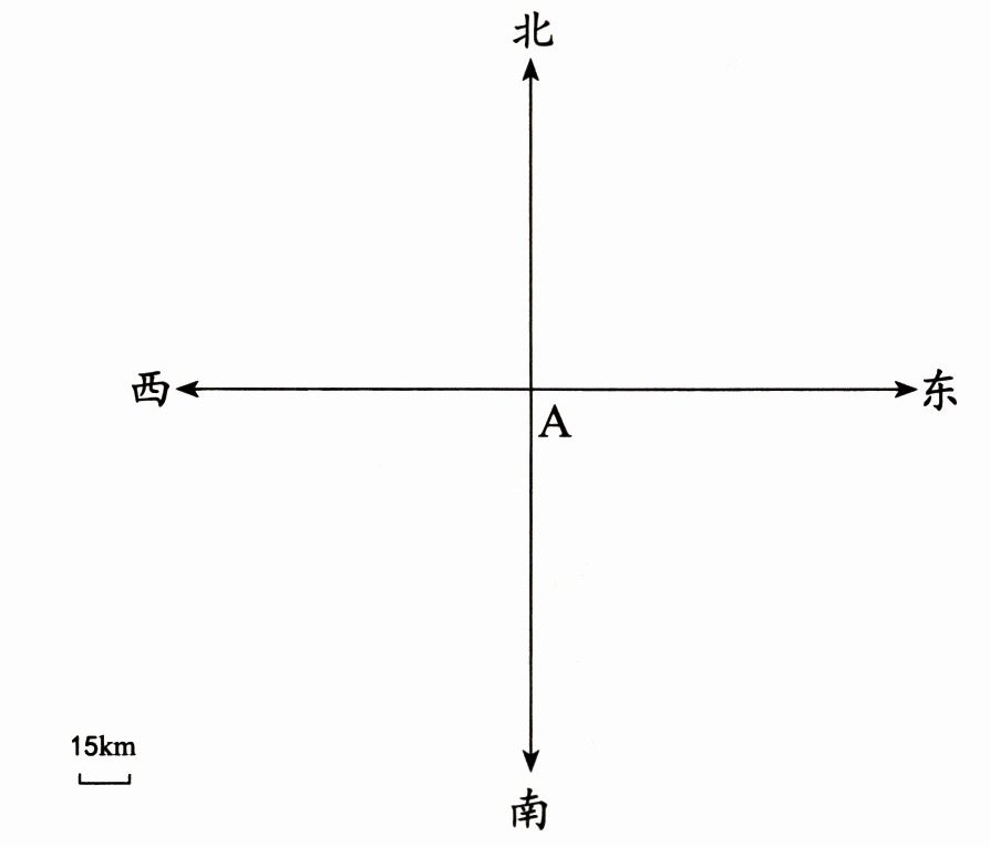 1. 确定比例尺:图中线段比例尺表示图上1厘米代表实际距离15km。