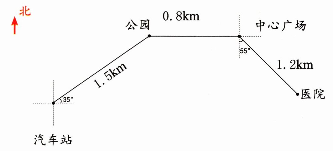 km到达医院。(2)从医院方向返回时,3路公交车先向