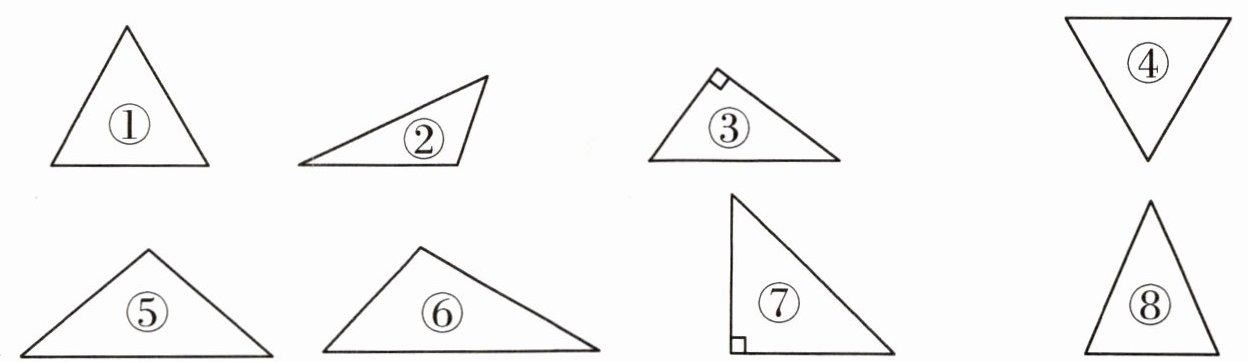 锐角三角形有:①④⑧