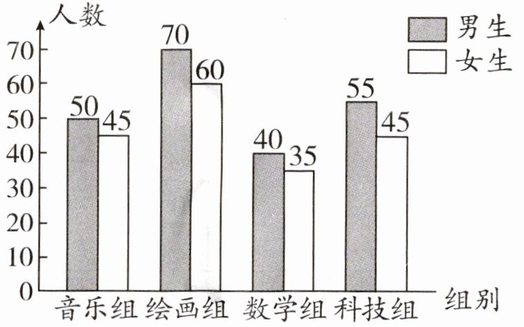 1. 绘画组人数最多,70+60=130(人)