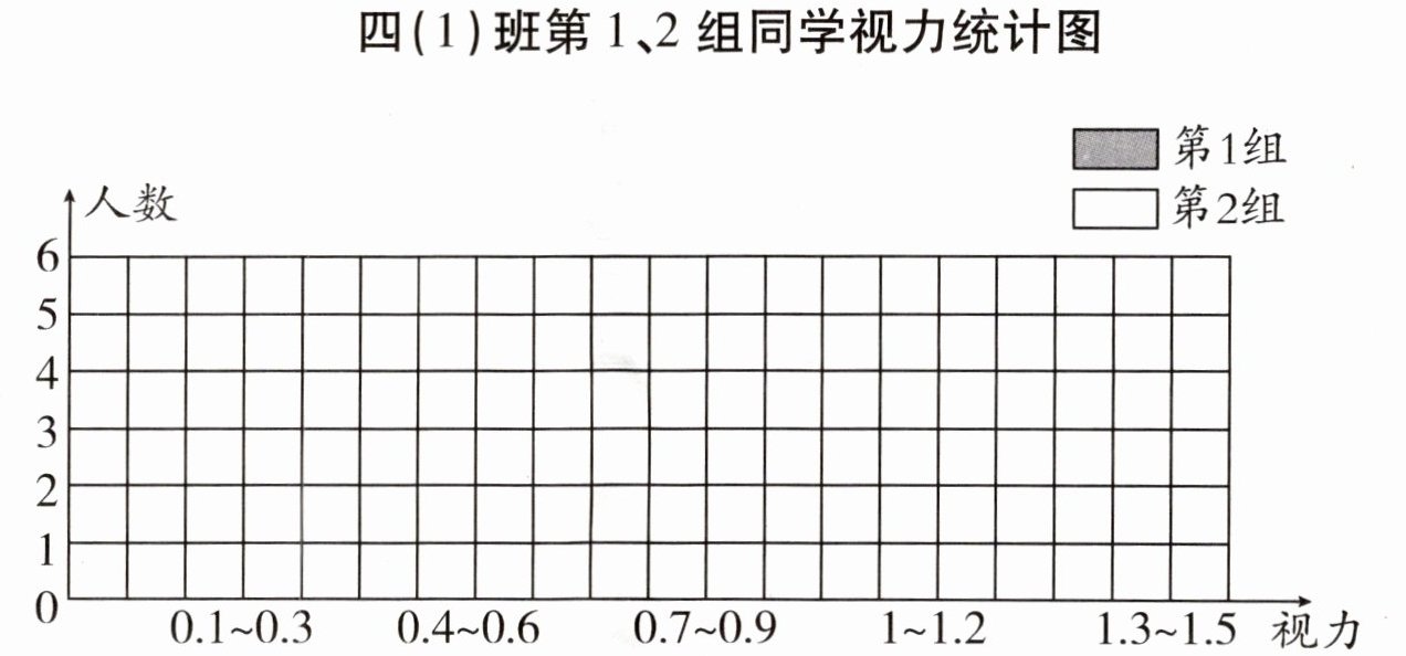 一、四(1)班两个组的同学视力情况如下表,根据表中数据完成统计图。