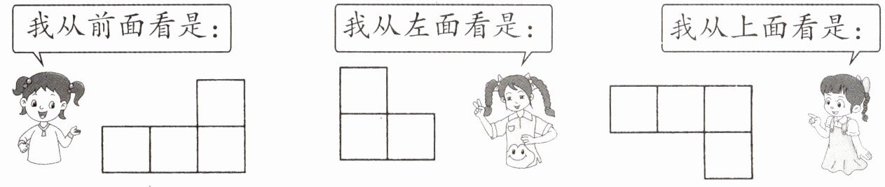 下面是根据上面3个小朋友看到的图形,搭成的物体,搭的对吗?