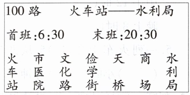1. 爸爸晚上9时下火车,要坐100路公交车回家,来得及吗?