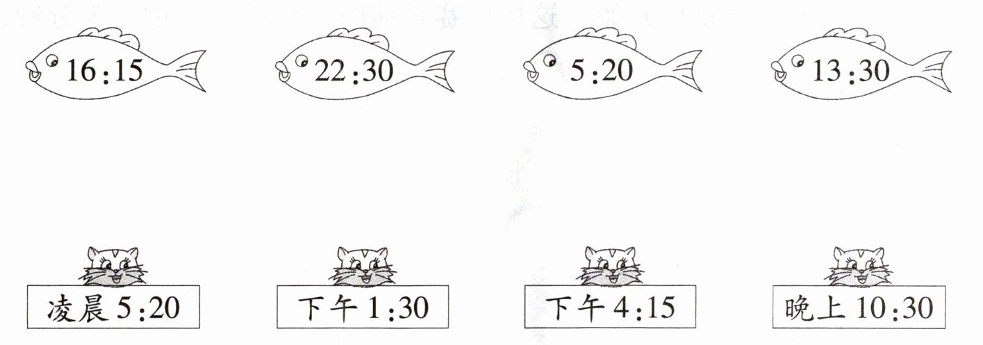 本题可根据普通计时法与24时计时法的转换规则来连线。