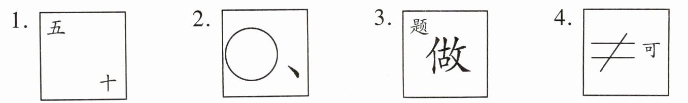 第四幅图中,“非”字和“可”字中间有一道斜线,表示“非”和“可”不能按照常规组合,可联想到成语“非同小可”,指情况严重或事情重要,不能轻视。