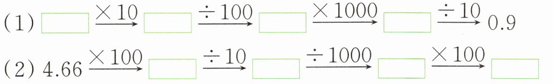 (2)把一个小数先扩大到它的1000倍,再缩小到所得数的$\frac {1}{10}$,就是把这个小数的小数点(