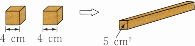 3 素养点 泥塑艺术是我国一种古老的民间艺术,它以泥土为原料,以手工捏制成形。聪聪在泥塑课上把两个棱长为4cm的正方体彩泥捏成了一个横截面是$5cm^2$的长方体,捏成的长方体的长是多少厘米?