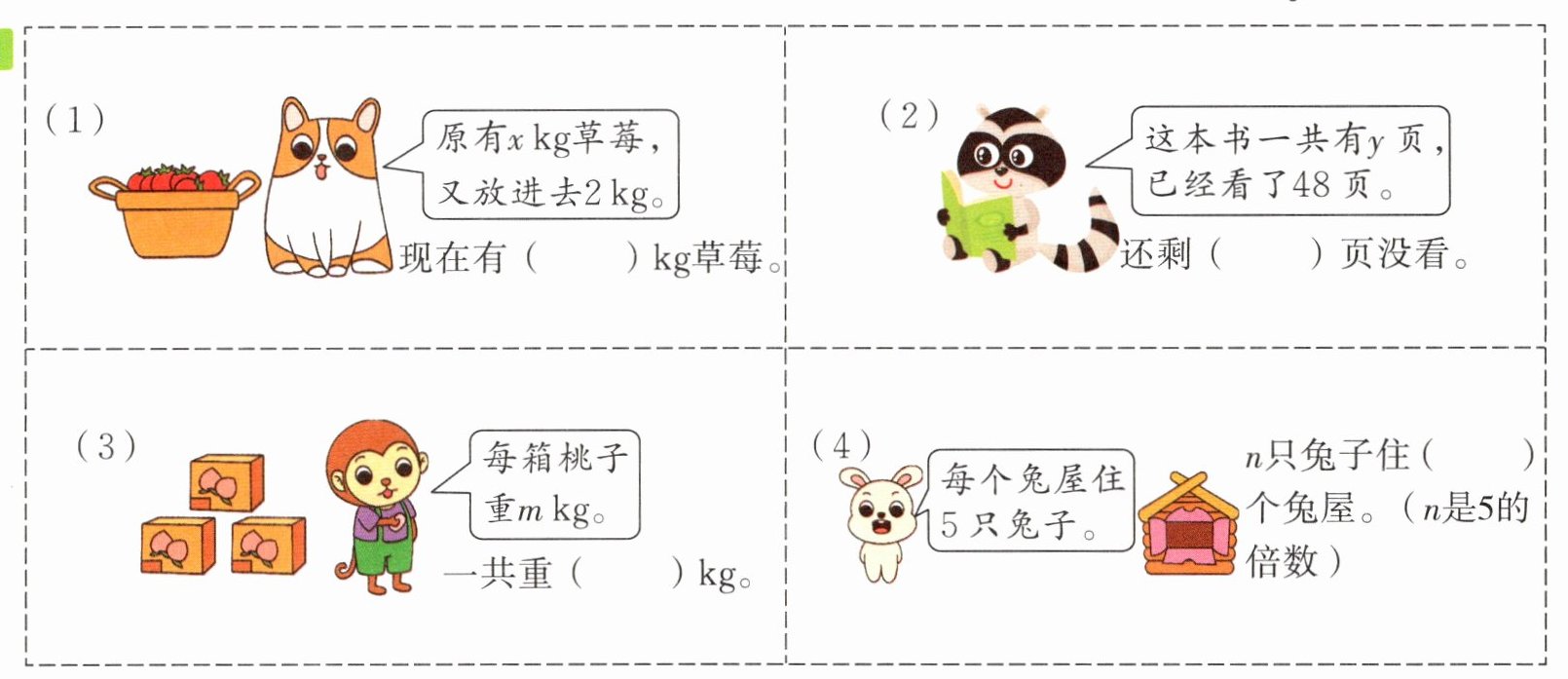 (2)五个连续的自然数,如果第二个数用m表示,那么第五个数用(
