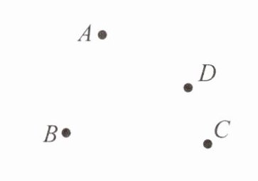 4.如图,已知四点A,B,C,D.根据下列语句,画出图形.