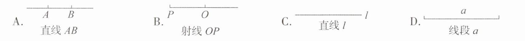 (3)直线的表示方法有两种,一是用一个小写字母表示,二是用直线上的两个大写字母表示。