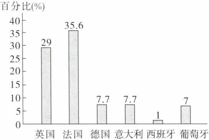 材料二 下图为各国在非洲的殖民地面积占非洲总面积的比例图。