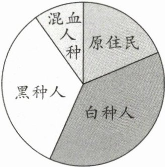 A 解析:由图中信息可以看出该地区存在黑种人、白种人、混血人种和原住民,其中黑种人和白种人所占比重较大。结合所学可知,在殖民扩张和奴隶贸易中,大量白人迁往美洲,大量黑人被贩卖到美洲,因此美洲的黑人、白人数量激增,而原住民由于被屠杀、被奴役和染上侵略者带来的疾病,数量减少,故 A 项正确。非洲的原住民是黑种人,B 项错误;巴尔干半岛的原住民是白种人,C 项错误;黑种人在印度所占比重较小,D 项错误。