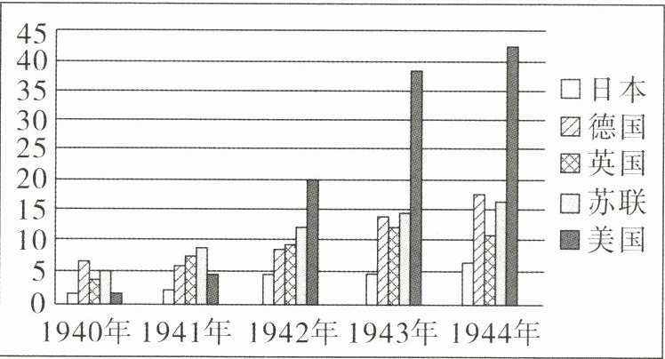【解析】:本题主要考查二战期间五国军火生产情况变化所反映的历史现象。