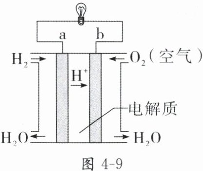 (3) 如图4-9所示是氢氧燃料电池的构造示意图。