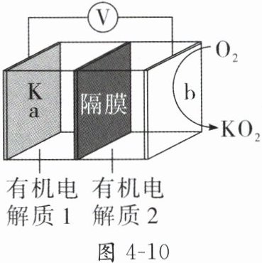 10. $K - O_{2}$电池结构如图4-10所示,a和b为两个电极,其中之一为单质钾片。关于该电池,下列说法错误的是(