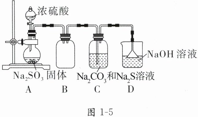 9. 硫代硫酸钠($Na_{2}S_{2}O_{3}$)常用作纸浆漂白的脱氯剂。实验室可用如图1-5所示的装置制备少量$Na_{2}S_{2}O_{3}$。