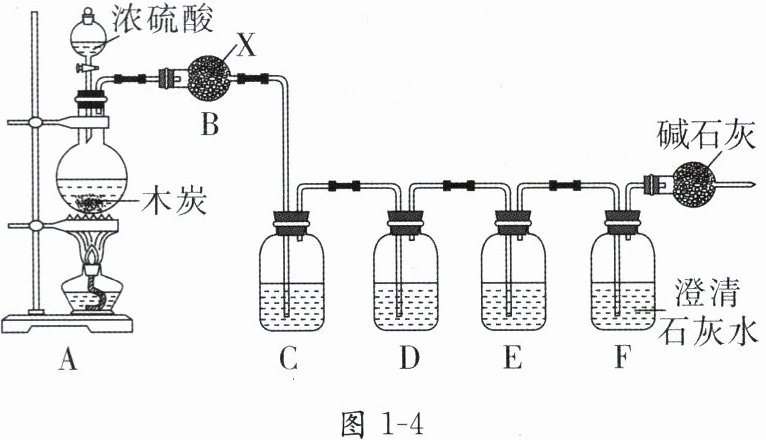8. 某兴趣小组设计了如图1-4所示的装置,以研究木炭与浓硫酸反应的产物。